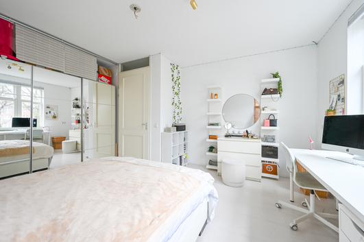 Deze unieke en ruime eindwoning biedt een comfortabele living met een fraaie aanbouw, een halfopen keuken en maar liefst twee badkamers. De woning beschikt over drie slaapkamers, maar er zijn mogelijkheden om de indeling te wijzigen en meer slaapkamers te creëren. De riante zolderverdieping biedt extra bergruimte en potentieel.De woning maakt onderdeel uit van een Gemeentelijk Monument, bestaande uit een wooncomplex met voormalige portiekwoningen uit de jaren dertig. Door samenvoeging (2006) van drie portiekwoningen is een royaal modern herenhuis ontstaan. De achtertuin, gelegen op het Zuidwesten, is een ideale plek om te genieten van de zon en beschikt over een achterom voor extra gemak. Het binnengebied is alleen toegankelijk via een poort, waar kinderen veilig kunnen spelen.