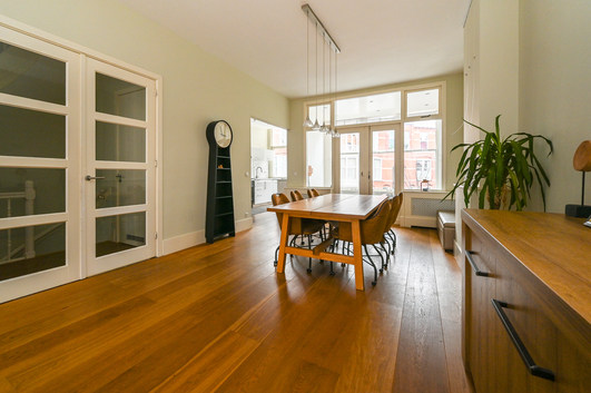 In het geliefde en statige Duinoord bevindt zich deze smaakvol gerenoveerde (2018) en royale bovenwoning, waar authentieke details en modern wooncomfort perfect samenkomen. De woning ademt karakter dankzij de hoge plafonds, stijlvolle paneeldeuren en een warme, uitnodigende sfeer die al bij binnenkomst voelbaar is.De ruime woonkamer is bijzonder licht en heeft een plafondhoogte van circa 3 meter, wat zorgt voor een indrukwekkend ruimtelijk gevoel. De woonkamer is afgewerkt met een warme parketvloer en beschikt over een serrekamer, ideaal om je even terug te trekken met een boek of als extra werk- of zithoek. De halfopen keuken is modern uitgevoerd en voorzien van alle gemakken. Verder beschikt de woning over vier ruime slaapkamers en twee werkkamers, perfect voor thuiswerken, gasten of hobby’s. Met twee complete en moderne badkamers is er bovendien volop comfort en gemak voor het hele gezin.