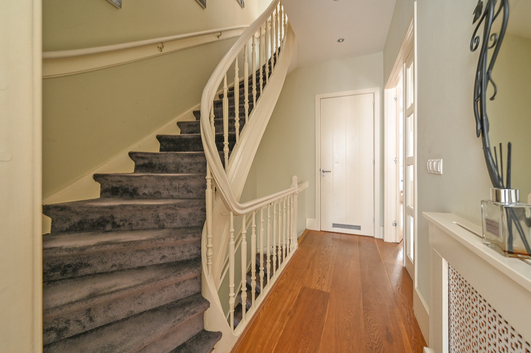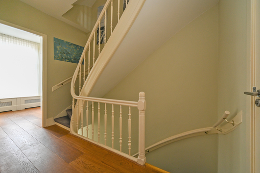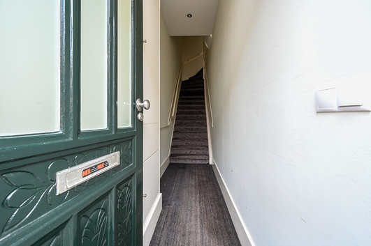 Via de eigen entree op straatniveau komt u binnen in de hal, waar zich de meterkast (voorzien van 12 groepen) bevindt, evenals de trapopgang naar de eerste verdieping.