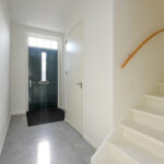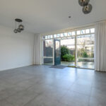 Bij binnenkomst in deze woning kom je in een ruime hal met een meterkast (9 groepen) en een modern toilet, voorzien van een hangcloset, inbouwreservoir en een fonteintje. De living is een fijne, lichte ruimte door de aanbouw en een grote achterpui, die zorgt voor veel daglicht. Met een plafondhoogte van 3 meter voelt de ruimte extra royaal aan. Via de openslaande deuren bereik je de prachtig aangelegde achtertuin, met een ideale zonligging (Noordwest), een houten berging en een handige achterom.