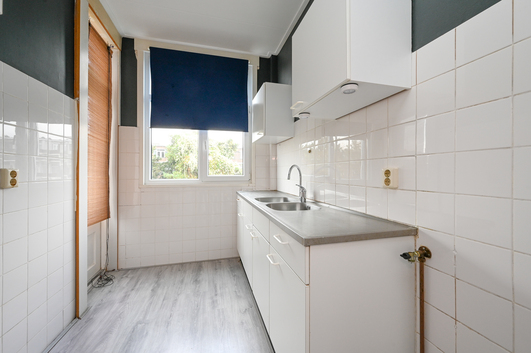 Het appartement beschikt verder over twee goed bemeten slaapkamers, waarbij er eenvoudig een derde slaapkamer te realiseren is. De badkamer is keurig, maar eenvoudig uitgevoerd en biedt een nette basis om eventueel naar eigen wens te moderniseren.