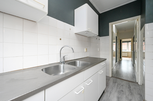 De keuken bevindt zich aan de achterzijde en is voorzien van een eenvoudige rechte opstelling met voldoende kastruimte en een opstelplaats voor de cv-ketel (Remeha, bouwjaar 2017).