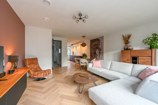 - Begane grond is voorzien van een PVC vloer visgraat gelegd