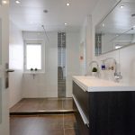 Eerste verdieping: verrassende overloop door het lichtinval via het raam in de zijgevel. Aan de achterzijde van de woning is een riante ouderslaapkamer ontstaan door de samenvoeging van twee slaapkamers met een kastenwand. Aan de voorzijde is een slaapkamer gelegen met extra lichtinval door een raam in de zijgevel. Moderne badkamer welke is voorzien van een inloopdouche, breed wasmeubel met een dubbele kraan, designradiator en een tweede toilet met een hangcloset en een inbouwreservoir.