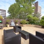 Tweede verdieping: overloop met een vaste kast waarin een opstelplaats voor een cv-ketel (Vaillant 2011) en een vaste kast met opstelplaats voor een wasmachine en mechanische ventilatie-unit. Riante slaapkamer. Vanuit de overloop toegang tot een heerlijk dakterras met de mogelijkheid om de woning te vergroten.