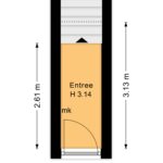 Entree op straatniveau, hal met meterkast 5. groepen) en binnentrap naar de 1e verdieping.