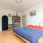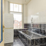 2e verdieping: overloop, toilet met een fonteintje, separate douchegelegenheid. Slaapkamer aan de achterzijde van het appartement met een vaste kast. Riante masterbedroom met sfeervolle schouw en veel lichtinval door de grote raampartij met openslaande deuren naar een prettige buitenruimte op het Zuidwesten. Aan de voorzijde van het appartement is de badkamer gelegen met een ligbad, wasmeubel en opstelplaats voor een was-/droogcombinatie. Ruime slaapkamer aan de voorzijde van het appartement met de bekende schouw.