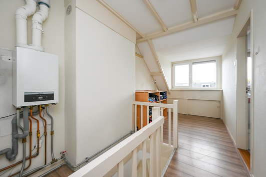 De ruime overloop is dankzij de dakkapel heerlijk licht en biedt plaats aan de wasmachine en de cv-ketel (Nefit, 2022).
