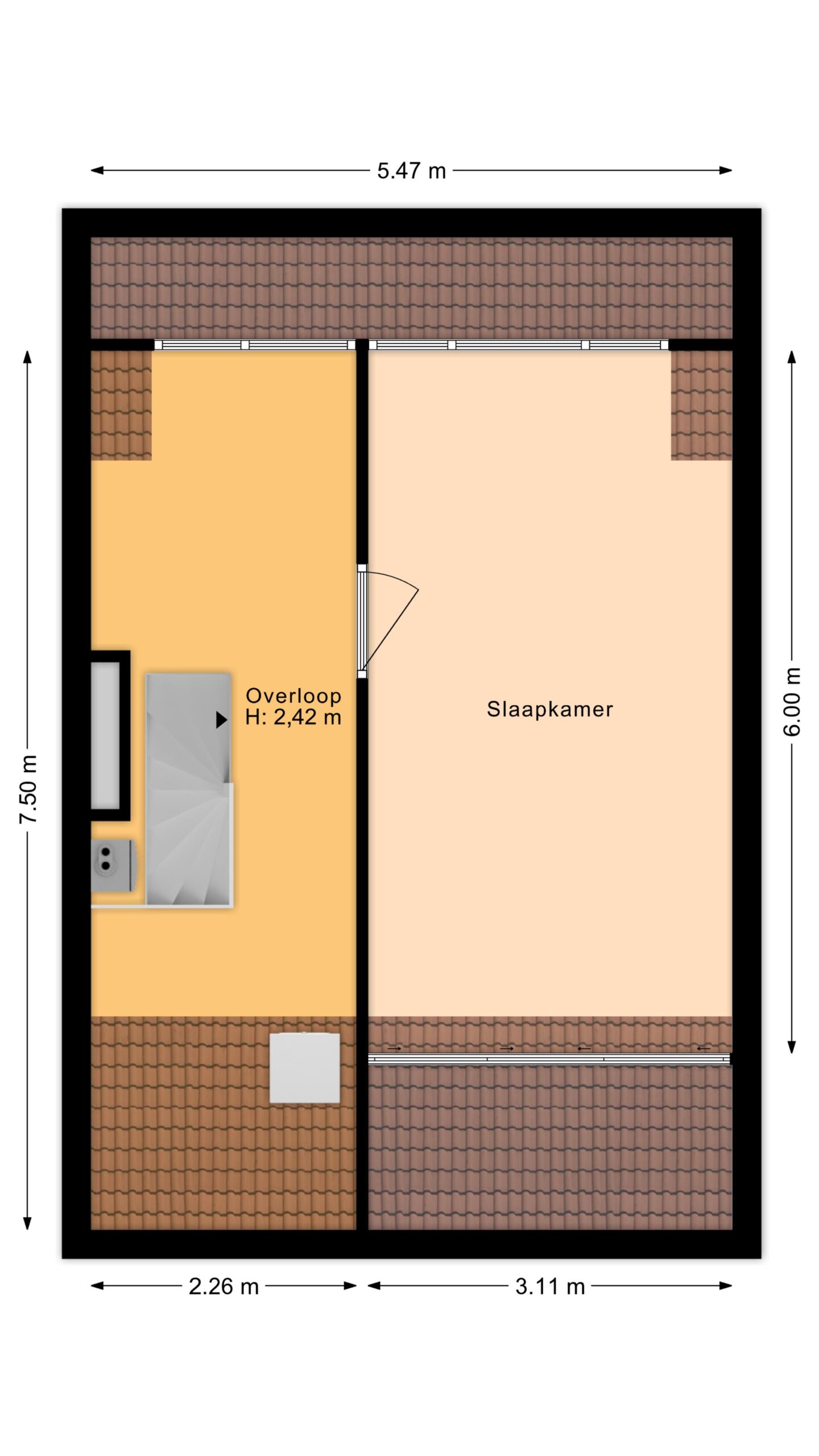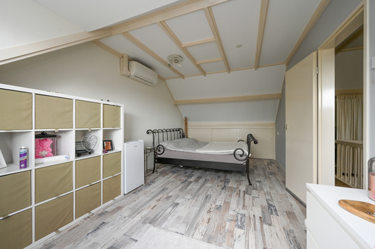 De zolder beschikt over een royale slaapkamer met dakkapel en is voorzien van airconditioning.