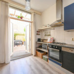 Aan de achterzijde van de woning bevindt zich een royale hoekkeuken voorzien van diverse inbouwapparatuur: een 4-pits gaskookplaat, afzuigkap, oven, vaatwasser en een koel-/vriescombinatie. Via openslaande deuren is de beschutte achtertuin bereikbaar, waar je dankzij de gunstige zonligging al vroeg in het jaar kunt genieten van het buitenleven.