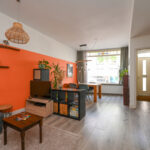 Entree op straatniveau met hal en meterkast (8 groepen). De lichte en prettig ingedeelde woonkamer biedt ruimte aan zowel een gezellige eethoek als een knusse zithoek. In de vaste kast bevinden zich de aansluitingen voor een was-/droogcombinatie en de opstelplaats voor de cv-ketel (Intergas, 2022).