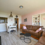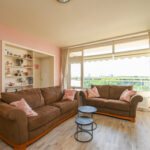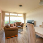 De sfeervolle woon-/eetkamer biedt directe toegang tot het royale balkon, dat zich uitstrekt over de volledige breedte van het appartement. Dankzij de gunstige zonligging is dit de perfecte plek om na een werkdag heerlijk te ontspannen en te genieten van het vrije uitzicht richting Kijkduin.