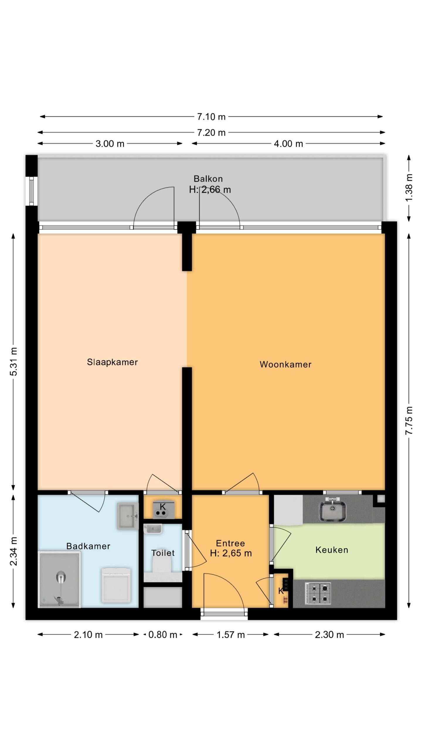 Voor dit object geldt een woonoppervlak van ca. 55m2.