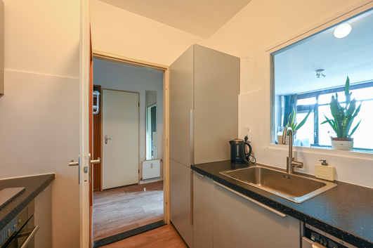 Via de verzorgde en afgesloten entree met camerabewaking, brieven- en bellentableau, liften en huismeester voel je je direct veilig en thuis. Eenmaal op de vierde verdieping kom je via de corridor bij de entree van het appartement.