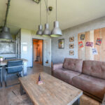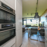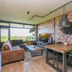 De sfeervolle woon-/eetkamer biedt directe toegang tot het royale balkon, dat zich uitstrekt over de volledige breedte van het appartement. Dankzij de gunstige zonligging is dit de perfecte plek om na een werkdag heerlijk te ontspannen en te genieten van het vrije uitzicht richting Kijkduin.