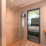 De ruime hal is voorzien van een garderobe, moderne toiletruimte met hangcloset, inbouwreservoir en een fonteintje en een meterkast met 7 groepen. De afwerking is strak en eigentijds.