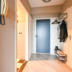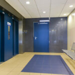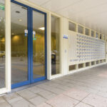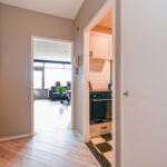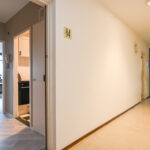 Afgesloten en verzorgde entree met bellen- en brievenbussentableau met camerabewaking, huismeester en trappenhuis met liften. Corridor op de 6e verdieping met entree tot het appartement: hal met meterkast (6 groepen), garderobe en een modern toilet met een fonteintje.
