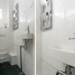 Slaapkamer aan de voorzijde van de woning met een wastafel en een slaapkamer aan de achterzijde van de woning voorzien van een velux dakraam