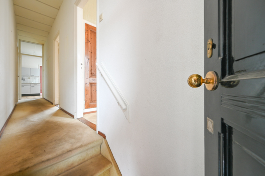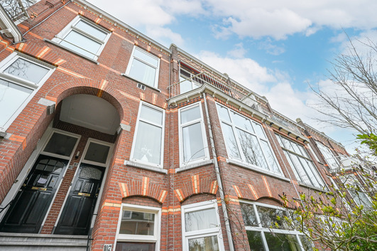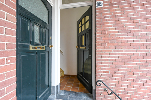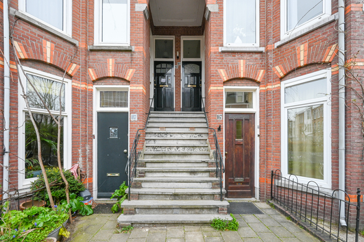 Via het fraaie, karakteristieke Haagse portiek bereikt u de entree van het appartement op de eerste verdieping, welke via een lichte trapopgang met drie treden toegankelijk is.