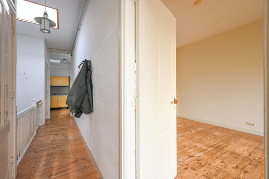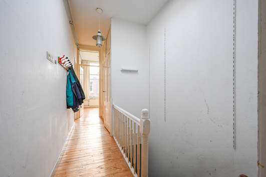 Via het fraaie, karakteristieke Haagse portiek bereikt u de entree van het appartement op de eerste verdieping. Hier bevindt zich de meterkast (5 groepen) en de binnentrap die toegang biedt tot de tweede verdieping, waar de woning is gelegen.
