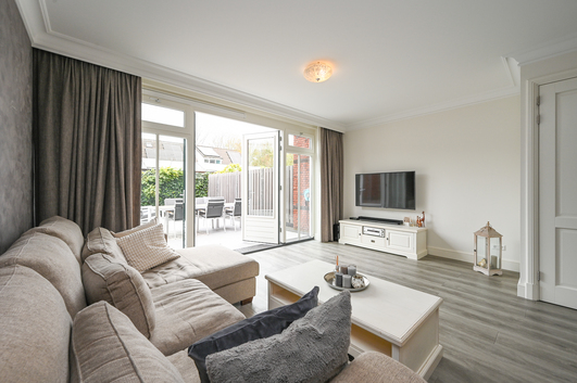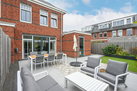 In de mooiste buitenwijk van Den Haag, Vroondaal, staat deze fraaie 2-onder-1-kapwoning die klassieke architectuur combineert met modern wooncomfort. Met een garage, oprit en voortuin beschikt de woning over maar liefst drie parkeerplaatsen op eigen terrein. De stijl is geïnspireerd op het geliefde Statenkwartier, wat zichtbaar is in de statige uitstraling, het oog voor detail en het karaktervolle ontwerp. Een huis met klasse en hedendaags woonplezier waar je royaal en rustig woont.De lichte living is een fijne plek om te ontspannen. De openslaande deuren verbinden de woning op een natuurlijke manier met de verzorgde achtertuin op het noordwesten. Dankzij de brede tuin en de gunstige ligging geniet je hier vanaf circa 11.00 uur van veel zonuren.