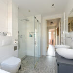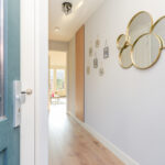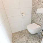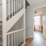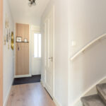 Via de voortuin toegang tot de woning. Hal met meterkast (8 groepen) en modern toilet met een hangcloset en inbouwreservoir. Bij binnenkomst in de hal een mooie doorkijk tot in de achtertuin door de achterpui met veel glasoppervlak.