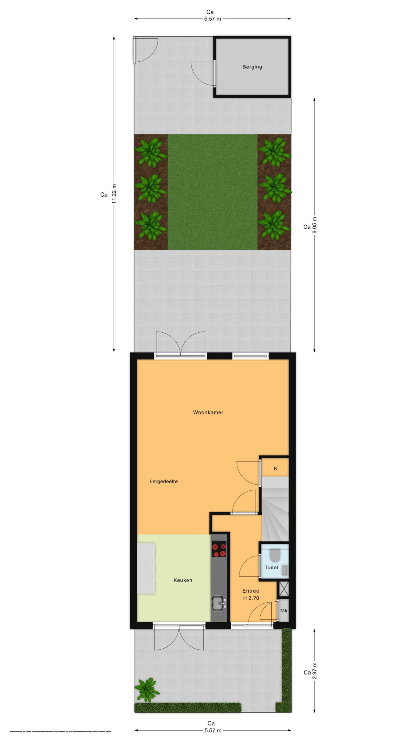 Voor deze woning een perceel van ca. 136m2 en een woonoppervlak van ca. 146m2.