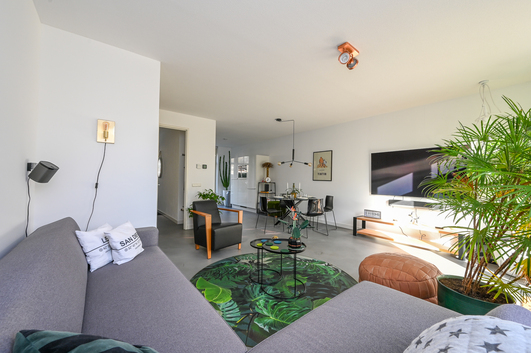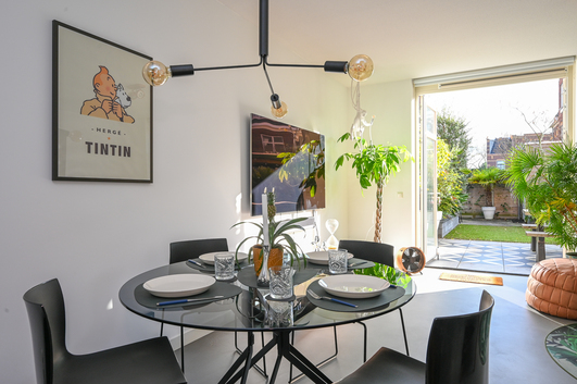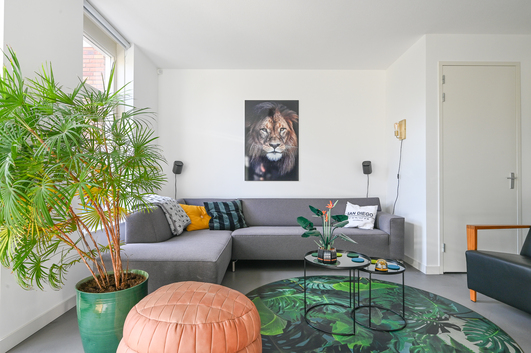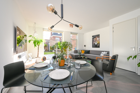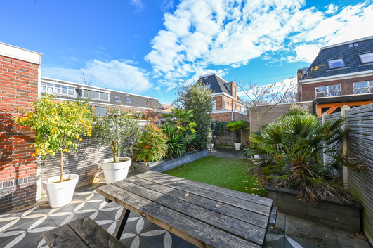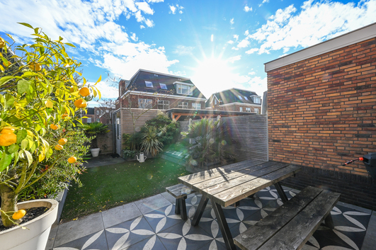 Binnen wacht een royale en lichte woonkamer, voorzien van grote raampartijen die een prachtig zicht geven op de fraai aangelegde achtertuin. Dankzij de ligging op het zuidoosten geniet u hier de hele dag van een heerlijke natuurlijke lichtinval en een zonnige sfeer. De achtertuin is een waar verlengstuk van de woning: smaakvol aangelegd, goed onderhouden en dankzij de ideale zonligging een perfecte plek om te ontspannen, borrelen of uitgebreid te dineren.