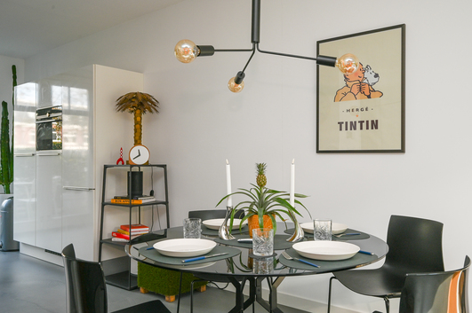 De moderne keuken in rechte opstelling is voorzien van een strakke kastenwand en luxe inbouwapparatuur. De woning beschikt verder over vijf ruime slaapkamers verdeeld over de verdiepingen, evenals een nette badkamer.