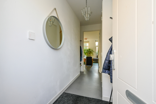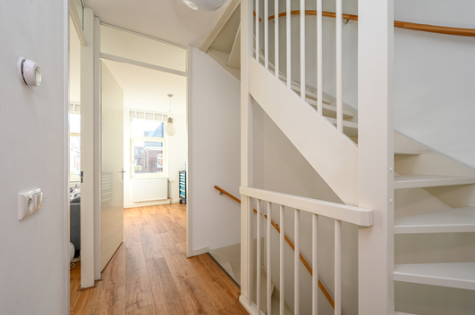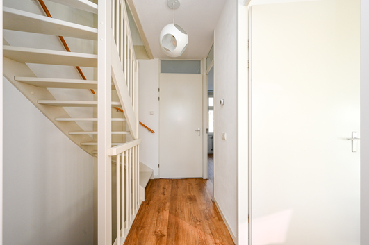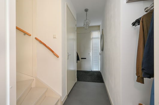 De woning beschikt over een verzorgde voortuin met oog voor detail en een statige gevel die direct de toon zet. Via de entree bereikt u de hal met meterkast (9 groepen) en een modern uitgevoerde, volledig betegelde toiletruimte met hangcloset, inbouwreservoir en fonteintje.