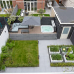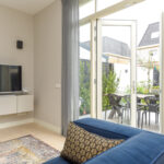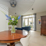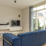 Sfeervolle woonkamer waarbij de plafondhoogte van bijna 3 meter hoogte direct opvalt evenals het hoogwaardige afwerkingsniveau en opvallend veel lichtinval door de raampartij in de zijgevel en openslaande deuren naar de ca. 11 meter diepe achtertuin. Door de hoekligging en inrichting van de achtertuin zijn er meerdere plekken om van de zon te genieten waardoor voor iedereen een fijne plek door een terras, verhoging met loungegedeelte en een jacuzzi, houten berging en achterom.