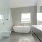 2e verdieping: overloop met een wasruimte welke is voorzien van een opstelplaats voor een was-/droogcombinatie, warmtepomp (eigendom) en een inverter (5 zonnepanelen). Charmante masterbedroom aan de voorzijde van de woning met een dakkapel. Royale en smaakvolle tweede badkamer aan de achterzijde van de woning met o.a. een ligbad, douche- en stoomcabine, een breed wasmeubel met een dubbele kraan en een derde toilet met een hangcloset en een inbouwreservoir. Vanuit de badkamer toegang tot een inloopkast.