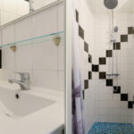 Open portiek met entree tot het appartement op de 1e verdieping. Centrale hal met een meterkast (6 groepen) en een vaste kast. Separaat toilet voorzien van een hangcloset, inbouwreservoir en een fonteintje. Sfeervolle woonkamer met een erker. De masterbedroom is via de woonkamer te bereiken en is aan de achterzijde van het appartement gelegen. Via een schuifpui toegang tot een balkon over de volle breedte van het appartement. Door de ligging op het Zuidwesten een heerlijke middag- en avondzon. Slaapkamer aan de voorzijde van het appartement. De keuken is voorzien van een rechte opstelling met o.a een 4-pits gaskookplaat, afzuigkap, oven, vaatwasser, koel-/vriescombinatie en opstelplaats voor een cv-ketel (Remeha 2015) en een opstelplaats voor een wasmachine. Vanuit de keuken eveneens toegang tot het balkon. Slaapkamer aan de achterzijde van het appartement. De tussengelegen badkamer is voorzien van een douchegelegenheid en een wasmeubel.