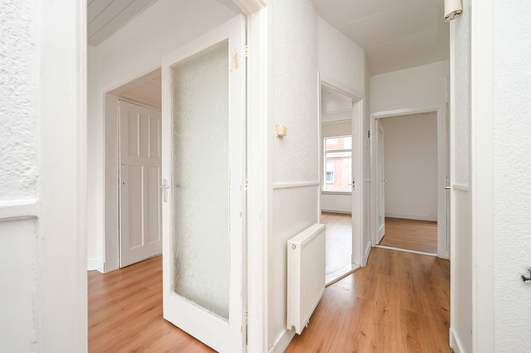 Welkom in dit ruime appartement op de tweede verdieping. De woning heeft een riante woonkamer en suite met klassieke separatie en prachtige glas-in-lood deuren. Daarnaast is er een nette keuken, een fijne badkamer en twee comfortabele slaapkamers. Dankzij de slimme indeling is het bovendien mogelijk om een derde slaapkamer te creëren.Voor deze woning een woonoppervlak van ca. 77m2.