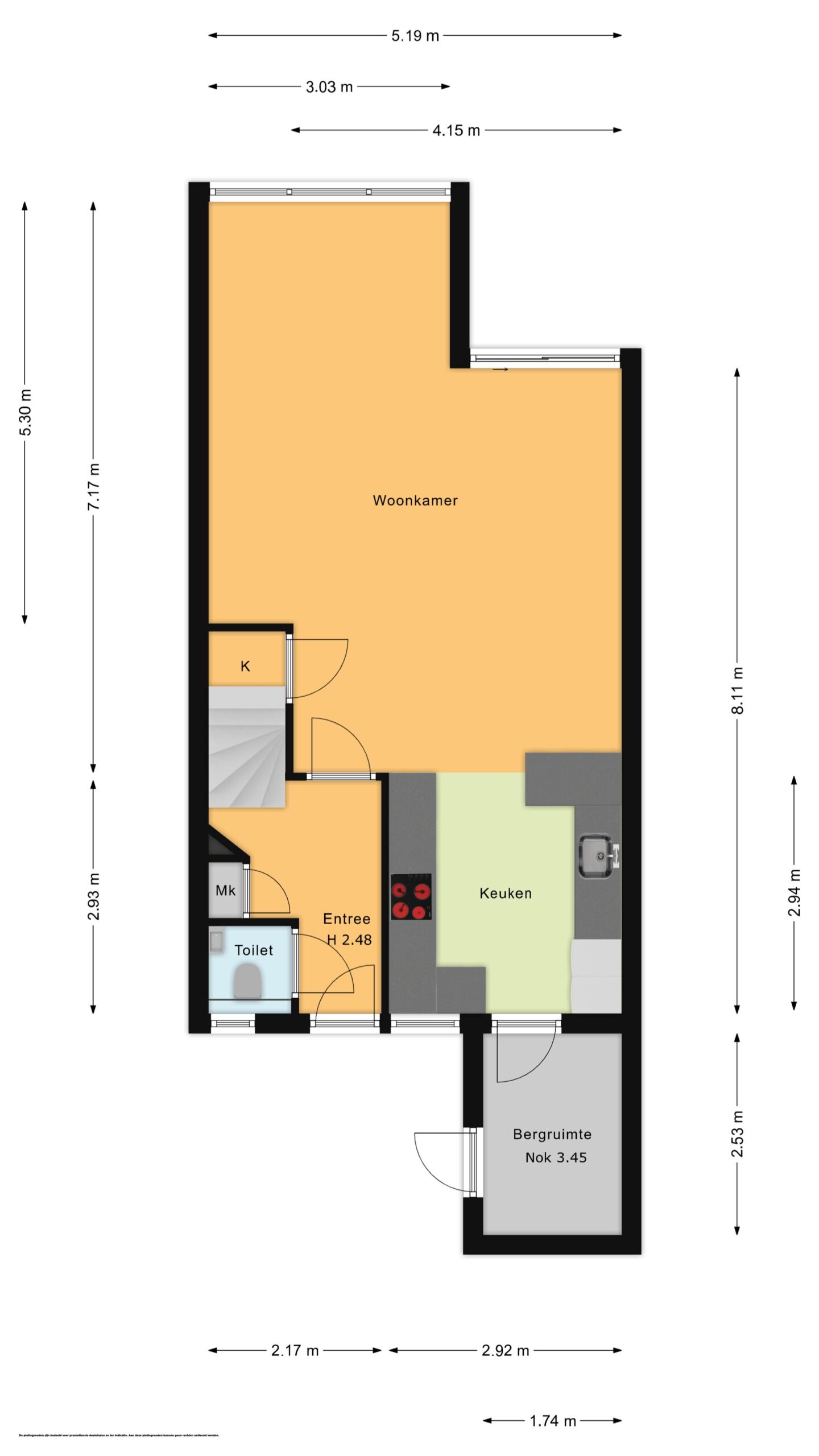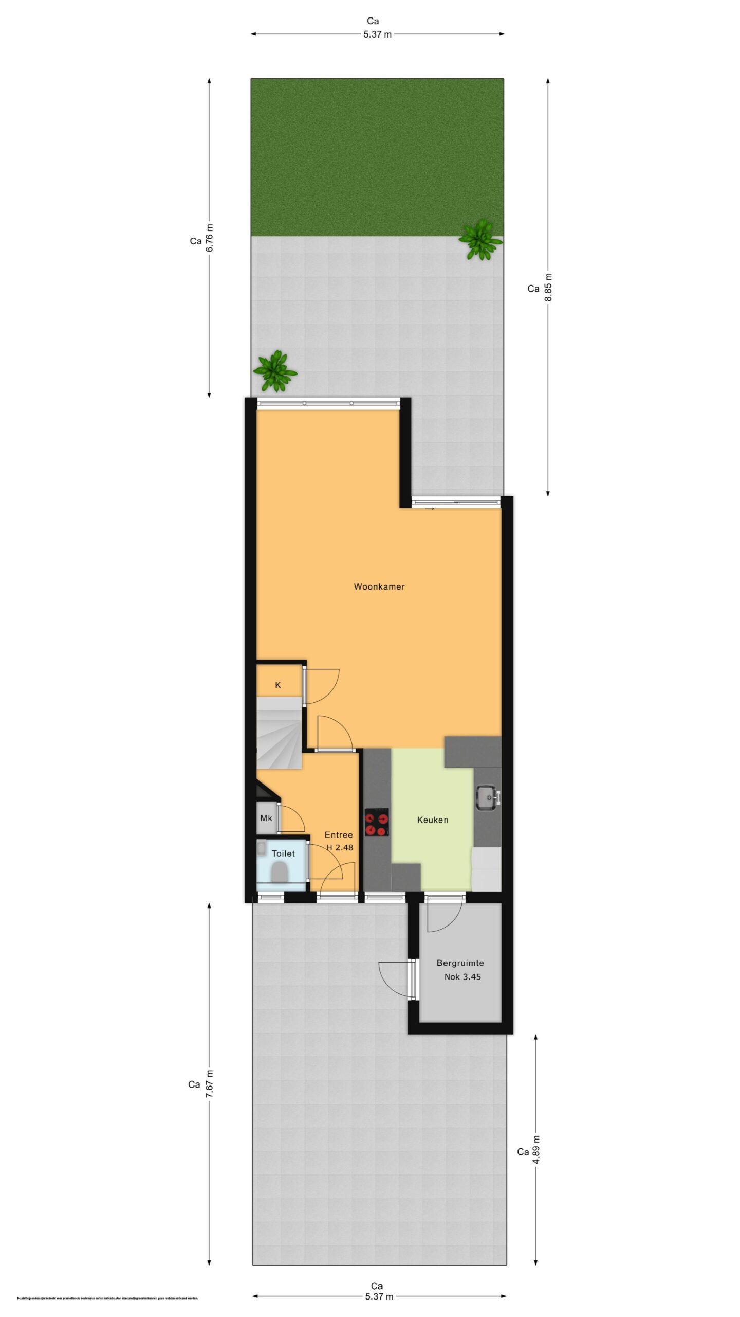 - Begane grond is voorzien van een pvc vloer
