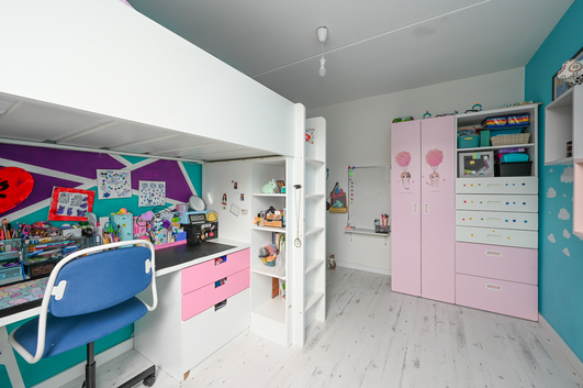 De woning telt maar liefst drie ruime slaapkamers. De masterbedroom is royaal opgezet en beschikt over een inloopkast en een praktische thuiswerkplek, een ideale combinatie om rustig te kunnen werken. Desgewenst kan hier eenvoudig een vierde slaapkamer worden gecreëerd.