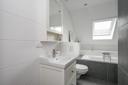 Aan de voorzijde bevindt zich nog een ruime slaapkamer met een leuk uitzicht over de voortuin. De moderne, volledig betegelde badkamer (2019) is een heerlijke plek om te ontspannen. Deze beschikt over een royaal ligbad, een separate douche met handige nis, een wastafelmeubel, een designradiator en een tweede toilet.