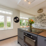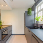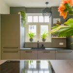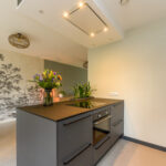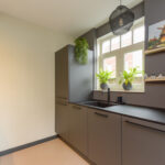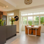 Aan de voorzijde van de woning zorgt een sfeervolle erker voor veel lichtinval bij de eetkamer en de moderne Siematic keuken met een kookeiland en een rechte opstelling. De keuken is o.a. voorzien van een inductiekookplaat, afzuigkap, stoomoven, combi-magnetron, grote koelkast met vriezer, vaatwasser en een fraai geïntegreerde kruidenbak wat mogelijkheid geeft voor beplanting of kruiden.