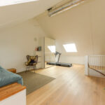 2e verdieping: enorme slaapkamer met een dakkapel en een dakraam. Wasruimte met opstelplaats voor een was-/droogcombinatie en WTW-installatie.