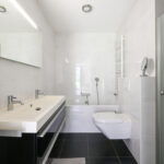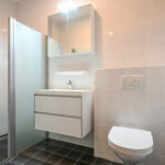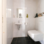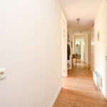 Bij binnenkomst in het appartement tref je een centrale L-vormige hal met modern volbetegeld toilet en handige was-/bergruimte met opstelplaats voor was-/droogcombinatie, cv-ketel (Intergas 2025) en een dubbele unit mechanische ventilatie.