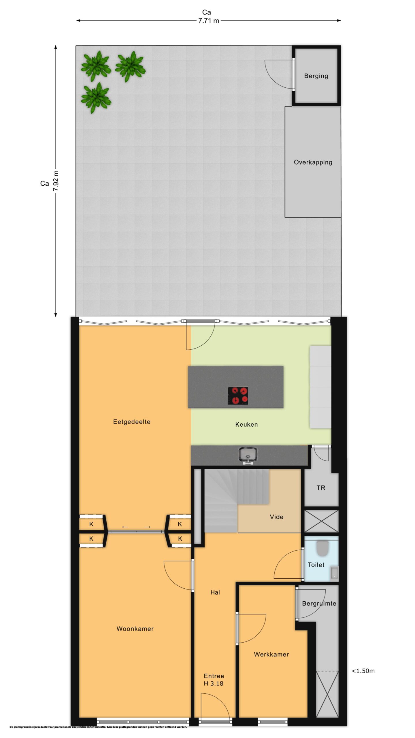 Souterrain: Via het imposante trappenhuis met moswand bereik je het royale souterrain. De hal biedt toegang tot diverse praktische ruimtes, waaronder een technische ruimte met de binnenunit van de warmtepomp (Vaillant) met een buffervat (190 liter), een wasruimte met opstelplaats voor een was-/droogcombinatie en een modern toilet met hangcloset en een compact meubel. Voor de afvoer van het toilet, de badkamer en de wasruimte is een speciale pompinstallatie aanwezig.