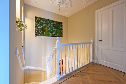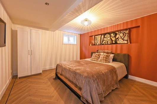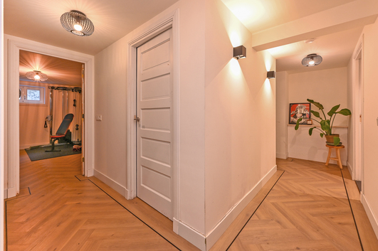 Via het statige trappenhuis bereik je het royale souterrain, waar zich nog eens drie volwaardige slaapkamers bevinden.