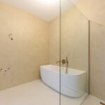 2e verdieping: deze verdieping is slim ingericht met een enorme masterbedroom met mogelijkheid voor eventueel een extra slaapkamer en een (open) 2e badkamer waarvoor voorbereidingen zijn getroffen. Wasruimte met opstelplaats voor een wasmachine, opstelplaats voor een WTW en inverter voor de zonnepanelen.