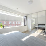 Slaapkamer aan de voorzijde van de woning. Slaapkamer aan de zijgevel waardoor veel lichtinval door extra ramen in zij- en achtergevel.