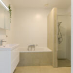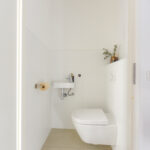 Entree op straatniveau, hal met meterkast (14 groepen). Vaste kast met warmtepomp en boilervat (240 liter) achter handige schuifdeur. Modern toilet voorzien van een hangcloset, inbouwreservoir en een fonteintje.