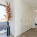 Vanuit de overloop toegang via een deur naar het riante dakterras met een vrij uitzicht over de wijk en een fijne zonligging.