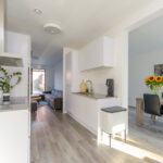 De begane grond is verrassend ruim en is slim ingedeeld met een sfeervolle living, aangrenzend een halfopen moderne en luxe keuken (2019) met 2 rechte opstellingen. De keuken heeft hierdoor veel werkblad, inductiekookplaat, afzuigkap, magnetron, oven, vaatwasser, Quooker en een koel-/vriescombinatie. De naastgelegen eetkamer geniet van veel lichtinval door extra ramen in zij- en achtergevel.