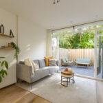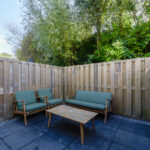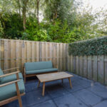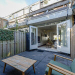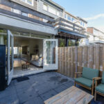 De knusse en lichte living geeft via openslaande deuren toegang tot de beschutte achtertuin, waar je heerlijk kunt genieten van de zon. Een perfecte combinatie van comfort en gezelligheid!