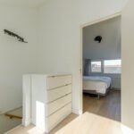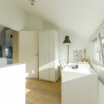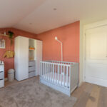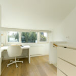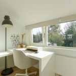 2e verdieping: ruime overloop met een comfortabele thuiswerkplek, die ook ingericht kan worden als vierde slaapkamer, en een prachtig vrij uitzicht. Aan de voorzijde bevindt zich de masterbedroom, voorzien van een vaste kast met ruimte voor de cv-ketel (Remeha, 2018) en een aparte kast voor de was- en droogcombinatie.