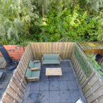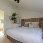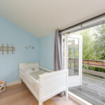 Aan de achterzijde bevindt zich een tweede ruime slaapkamer, met openslaande deuren naar het balkon. Hier kun je genieten van een prachtig uitzicht over de achtertuin en heerlijk ontspannen in alle rust.